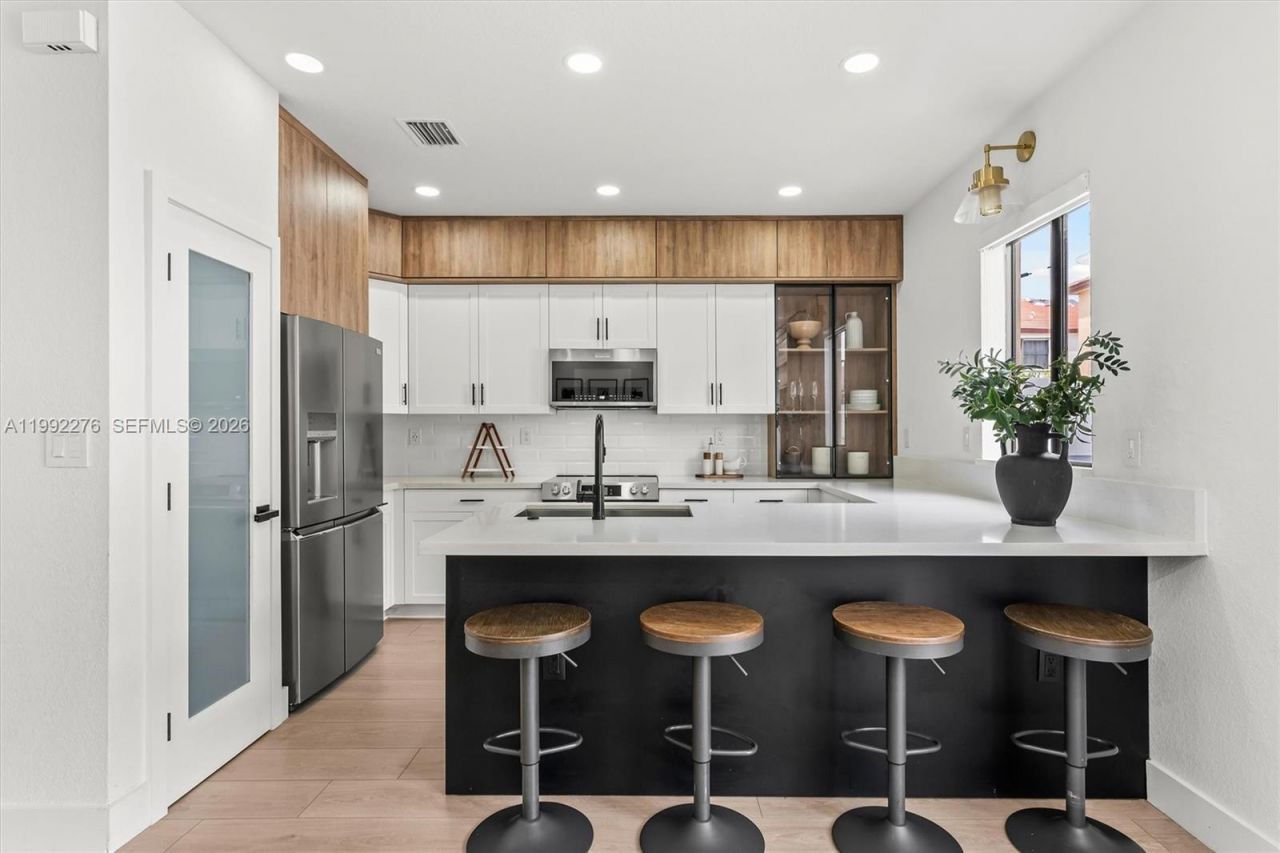 OPEN HOUSE SAT 12-3PM GATE CODE 71578- Step into DESIGNER-UPGRADED living in one of Aquabellas most striking townhomes currently available, where every finish and detail was thoughtfully picked! This elegantly remodeled 3-bed, 2.5-bath townhome is move-in ready, featuring fresh interior paint, hurricane impact doors, modern wood flooring throughout with no carpet, a custom modern stair railing, recessed lighting, zebra blinds, & an upgraded first-floor powder room. A stunning built-in fireplace ...OPEN HOUSE SAT 12-3PM GATE CODE 71578- Step into DESIGNER-UPGRADED living in one of Aquabellas most striking townhomes currently available, where every finish and detail was thoughtfully picked! This elegantly remodeled 3-bed, 2.5-bath townhome is move-in ready, featuring fresh interior paint, hurricane impact doors, modern wood flooring throughout with no carpet, a custom modern stair railing, recessed lighting, zebra blinds, & an upgraded first-floor powder room. A stunning built-in fireplace wall unit welcomes you and sets the tone for the warm, open-concept living space. The living & dining area flows into a stunning kitchen with high-end two-tone cabinetry and upgraded Frigidaire Gallery appliances, plus an additional family room. West-facing exposure fills the home with natural light throughout the day! Enjoy a private oversized patio finished with artificial turf. The generously sized primary suite offers a comfortable retreat, while both the primary & second bedrooms feature large walk-in closets. All rooms are fit with custom built-ins closets. Additional features include: water filtration system, washer/dryer, Ring door camera/alarm system, & AT&T internet is included with the HOA. Two assigned parking spaces plus guest parking conveniently located across the home. Resort-style amenities include 2 clubhouses, pools, gyms, splash zone, parks, gated entrances & year-round community events. This is a fee simple townhome w/ flexible financing including 3.5% or 5% down.