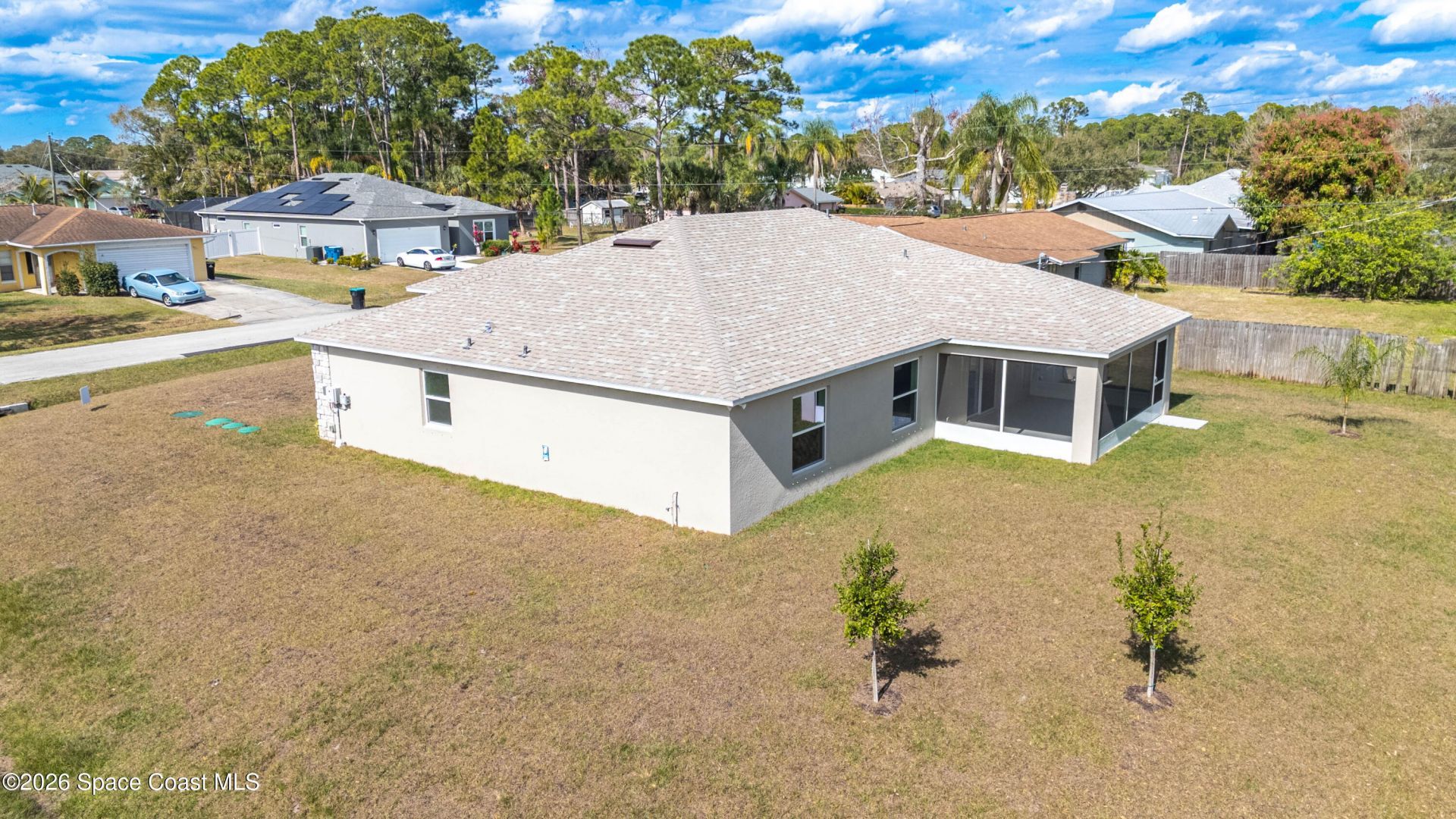 Located in a Great location & NO HOA, this well-designed brand new home offers comfort, quality, and modern finishes throughout. Featuring 3 bedrooms PLUS an office / den or 4th bedroom option, 2 Full bathrooms, and a 2-car garage, the layout is both functional and inviting. A large 17 x 11 bonus room provides flexible space for a home office, playroom, or media room, while the formal dining room adds a touch of classic style.The heart of the home includes a bright great room with LED lighting o...Located in a Great location & NO HOA, this well-designed brand new home offers comfort, quality, and modern finishes throughout. Featuring 3 bedrooms PLUS an office / den or 4th bedroom option, 2 Full bathrooms, and a 2-car garage, the layout is both functional and inviting. A large 17 x 11 bonus room provides flexible space for a home office, playroom, or media room, while the formal dining room adds a touch of classic style.The heart of the home includes a bright great room with LED lighting on dimmers, flowing into a thoughtfully finished kitchen with level 2 soft-close cabinets, staggered uppers with crown molding, and quartz countertops with a large island / bar. Enjoy Stainless steel appliances including a range, dishwasher, built-in microwave, and a 25 cu ft side-by-side refrigerator.Throughout the home, Mohawk Level 2 Revwood plank flooring adds durability and warmth, with tile flooring in the bathrooms and laundry room. The primary suite features a tray ceiling, dual dimmable lighting, and a spacious bath with a 9-foot tiled shower. HIGHLIGHTS: Gorgeous Designer Home - Move-In Ready!Dont miss this beautifully upgraded 3-bedroom, 2-bath home with a 2-car garage and NO HOA--a rare find in Palm Bay!This thoughtfully designed home offers a formal dining room and a spacious 17x11 bonus room, perfect for a home office, flex space, or playroom. The open living area features Mohawk Level 2 RevWood plank flooring, enhanced by 4 LED dimmable lights, creating a warm and inviting space. The kitchen shines with granite countertops, an undermount sink, crown molding on cabinets, and a full suite of stainless steel appliances including a range, dishwasher, built-in microwave, and 25 cu ft side-by-side refrigerator.Primary Suite Retreat Tray ceiling 2 dimmable LED lights Spacious layout Elegant 5 tiled walk-in shower Outdoor LivingRelax or entertain on the 20x12 trussed, screened porch, overlooking your backyard with added flood lights and attractive stone exterior accents.Additional Features & Upgrades City Water / Septic Tile flooring in bathrooms & laundry Laundry room with utility tub Garage door opener + pull-down attic stairs Radiant barrier & R-38 insulation for energy efficiency Rounded drywall corners for a modern finish Kitchen & bath vents to exterior Seller Incentive:Up to $15,000 toward closing costs or interest rate buydown with an approved lender!