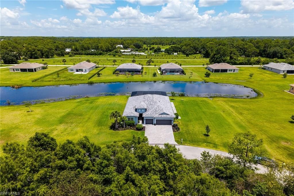 Are you longing for a taste of country life amidst your busy day? Imagine driving past horses and cows on your winding road or taking a stroll to the Caloosahatchee River to catch the sunset. If this sounds appealing, 17190 Serengeti Circle might be just what you're looking for.As soon as you enter the gated community, you are welcomed by a pair of lions and an elephant, making it clear that Serengeti stands apart from other subdivisions in the area. There are only 16 homes at Serengeti, each si...Are you longing for a taste of country life amidst your busy day? Imagine driving past horses and cows on your winding road or taking a stroll to the Caloosahatchee River to catch the sunset. If this sounds appealing, 17190 Serengeti Circle might be just what you're looking for.As soon as you enter the gated community, you are welcomed by a pair of lions and an elephant, making it clear that Serengeti stands apart from other subdivisions in the area. There are only 16 homes at Serengeti, each situated on approximately one acre of land, this community offers a unique living experience. Most homes at Serengeti serve as primary residences.This bright and immaculate luxury smart home features 3 bedrooms, 3 bathrooms, and a den-ideal for escaping the hustle and bustle while remaining close to conveniences. Babcock Ranch, with its shopping, restaurants, health and wellness facilities, and entertainment options, is just 15 minutes away. The charming and historic vibe of Fort Myers is about 25 minutes away. The W.P. Franklin locks with a boat ramp is only a 5-minute drive, offering easy access for your boating adventures.Upon entering the foyer, you'll be greeted by soaring cathedral ceilings, stainless steel appliances, and ample space for entertaining. The neutral color scheme combined with designer fixtures creates an inviting palette, perfect for making the space your own. The split floor plan ensures privacy and comfort, with two of the bedrooms featuring ensuite bathrooms, while the third bathroom is conveniently located next to the third bedroom.Enjoy the serene setting of 17190 Serengeti's lakefront screened-in lanai, complete with a heated pool and hot tub/spa-perfect for relaxation as you watch fish jump in the pond. Two lounge chairs, shaded by an umbrella resting in the water, offer a delightful spot to unwind. Additionally, a 2-car garage with a separate golf cart garage provides ample storage for your water and fishing toys, bicycles, and motorcycles. You have the option to maintain the landscaping yourself or collaborate with the onsite landscaping crew. Your home's front exposure faces a preserve area, home to resident hawks, owls, and osprey. Xfinity Fiber-Powered Internet coming soon! Home is being sold furnished and turn-key!Don't let this opportunity slip away if this sounds like your ideal Southwest Florida lifestyle!