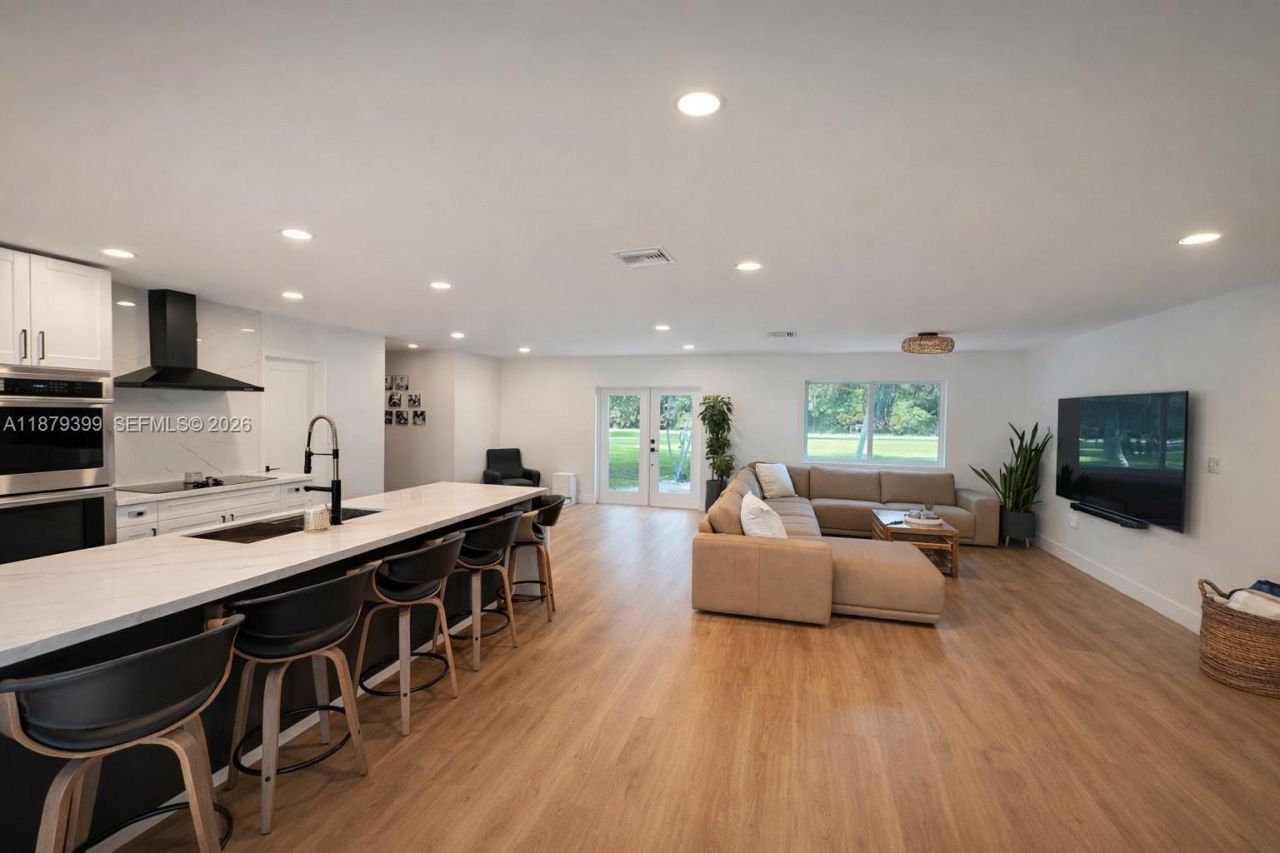 Fall in love with this beautifully renovated modern farmhouse on 2.5 acres in peaceful Southwest Ranches. Featuring a quartz waterfall kitchen, new appliances, impact windows and doors, private mother-in-law suite, barn, workshop, pool, and tranquil outdoor living. Most renovations completed! New roof 2021, HVAC 2024, beautifully updated with new wood look vinyl plank flooring. Work shop already has a car lift Close to I-75, 595 and Sawgrass exp. A must see!