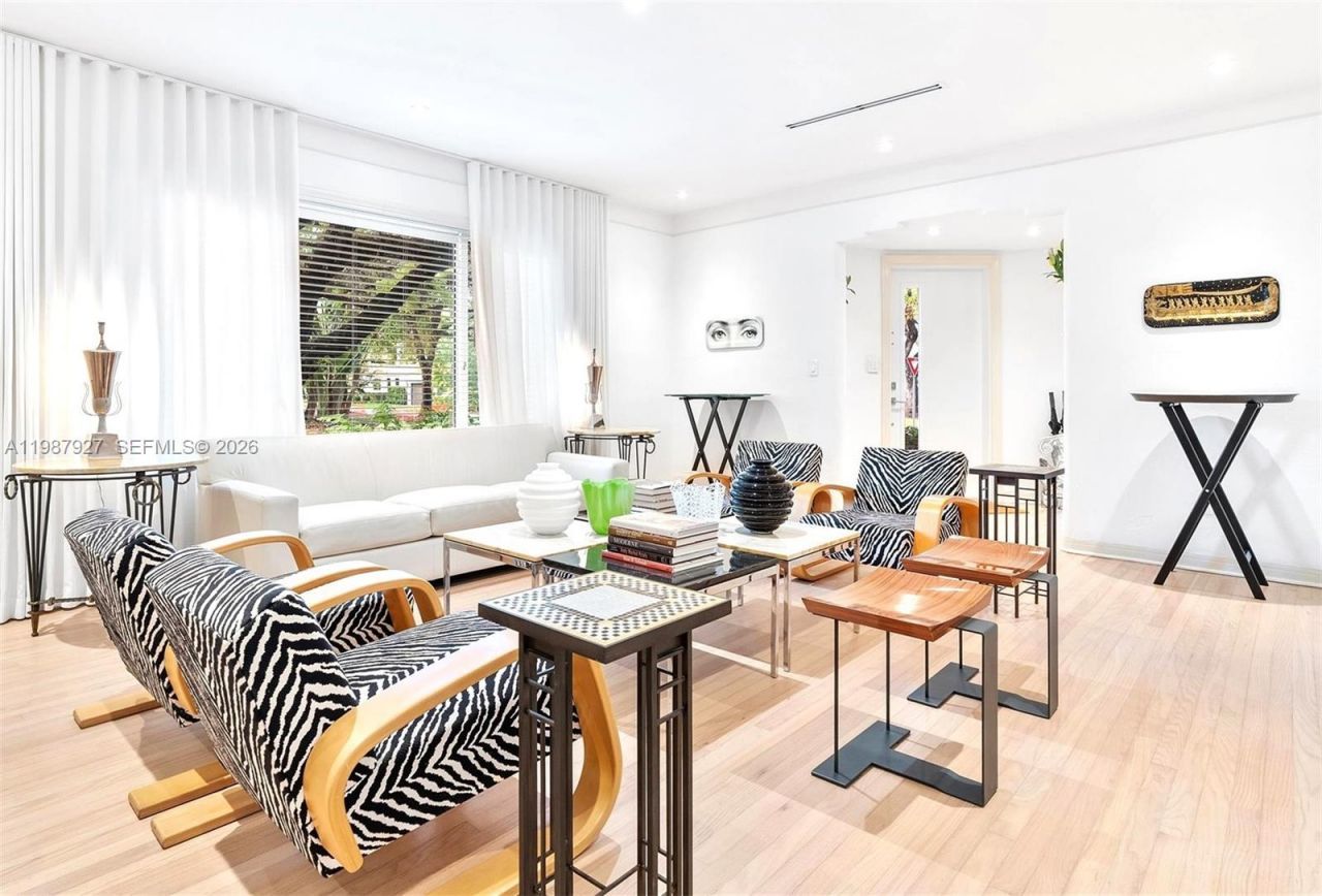 Welcome to Villa Moderne ? a rare and iconic Streamline Moderne residence designed by renowned MiMo architect Manfred Ungaro and completed in 1949. Beautifully reimagined, this home blends architectural history with modern luxury. Situated on a prominent 11,300 SF corner lot, the residence offers 2,204 SF of living space, featuring 3 bedrooms, 3 bathrooms, and a powder room. Natural light fills every room through impact windows, highlighting elegant interiors, Red Oak hardwood floors, and a stun...Welcome to Villa Moderne ? a rare and iconic Streamline Moderne residence designed by renowned MiMo architect Manfred Ungaro and completed in 1949. Beautifully reimagined, this home blends architectural history with modern luxury. Situated on a prominent 11,300 SF corner lot, the residence offers 2,204 SF of living space, featuring 3 bedrooms, 3 bathrooms, and a powder room. Natural light fills every room through impact windows, highlighting elegant interiors, Red Oak hardwood floors, and a stunning dining room with signature seafoam terrazzo. The chefs kitchen, recently showcased at the Coral Gables Tour of Kitchens, is both functional and refined, with Snaidero cabinetry, Miele appliances, and a generous pantry. A stylish wet bar discreetly conceals the laundry area, enhancing both design and practicality. Set on a quiet, tree-lined street, the property offers exceptional outdoor potential, including pre-approved plans for a pool and terrace?perfect for entertaining or relaxing in privacy. Ideally located just moments from Miracle Mile, fine dining, and top amenities, with convenient access to Miami International Airport. A distinctive residence where timeless design meets modern living.