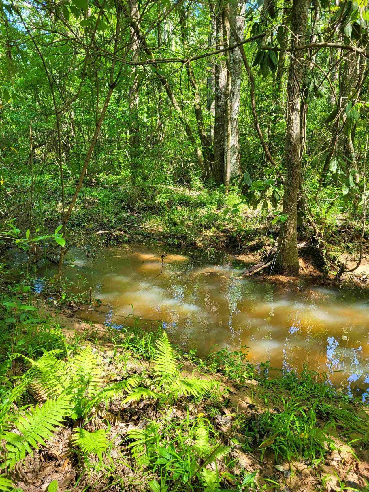 Nice rolling hills with a creek running through the middle at the bottom of the hills.
